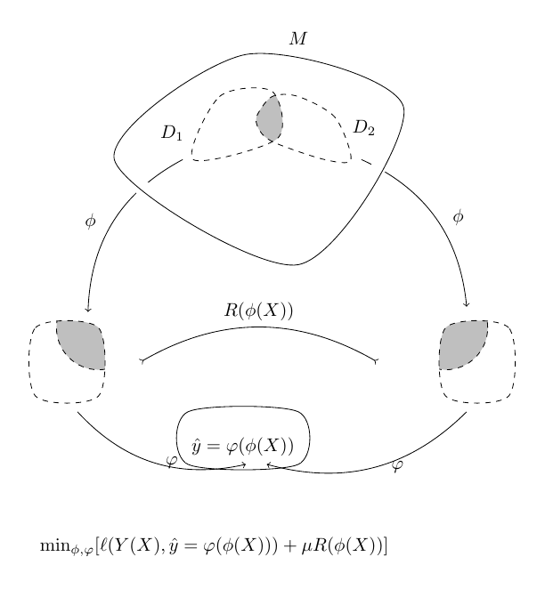 - $R(\phi(X))$ is the penalty loss to boost domain invariant feature extraction using $\phi$.