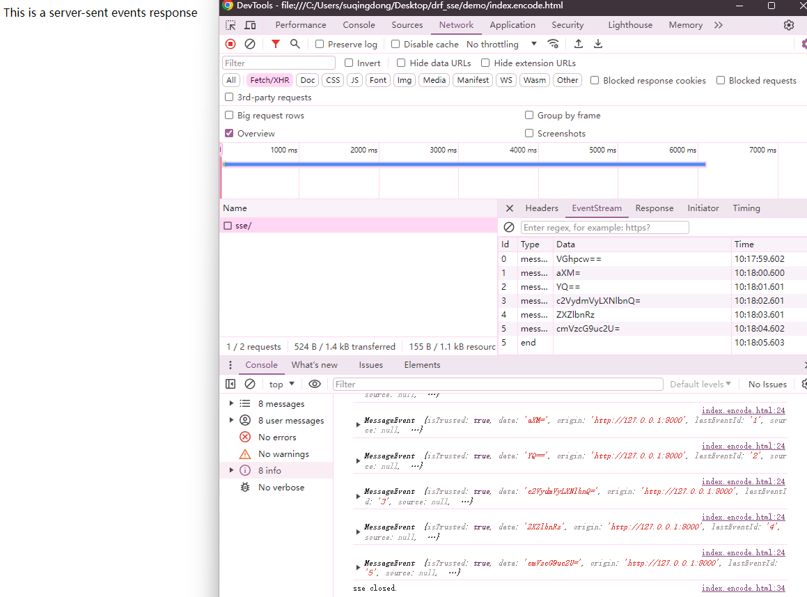 const eventSource = new EventSource('http://127.0.0.1:8000/sse/')