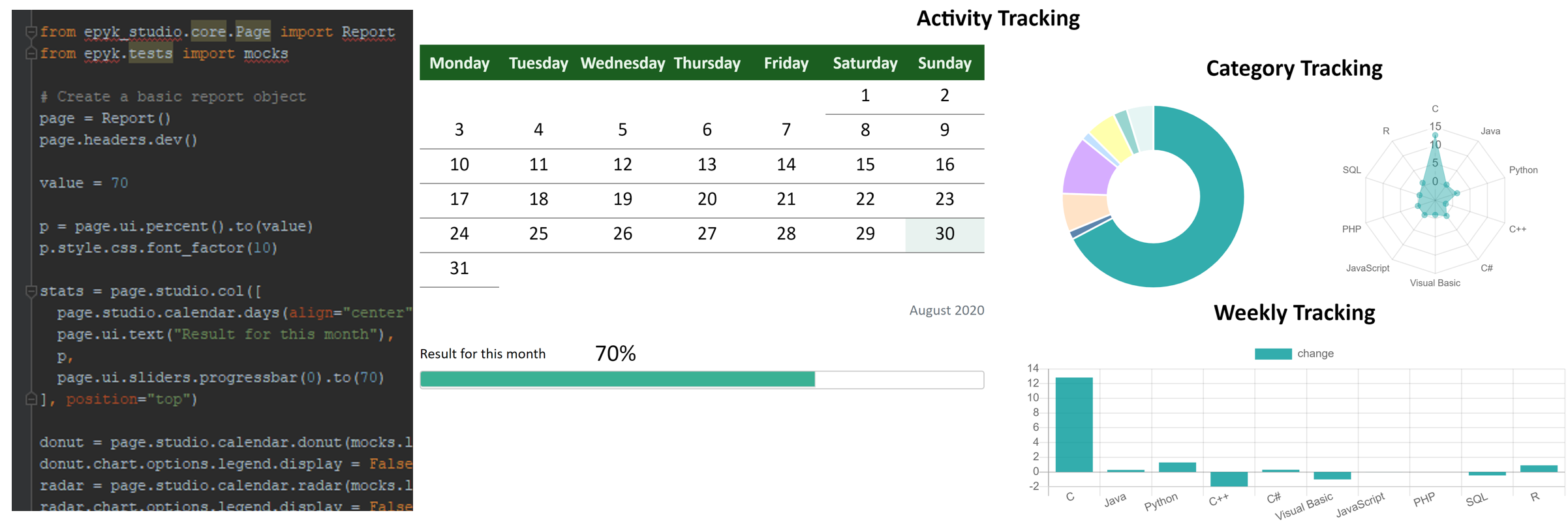 Epyk studio can be used for any kind of project from personal ones to professional ones when dashboards are needed. Thanks to this module and its design it will be easy to change layouts and to switch the display according to your audience (without changing code or technology).