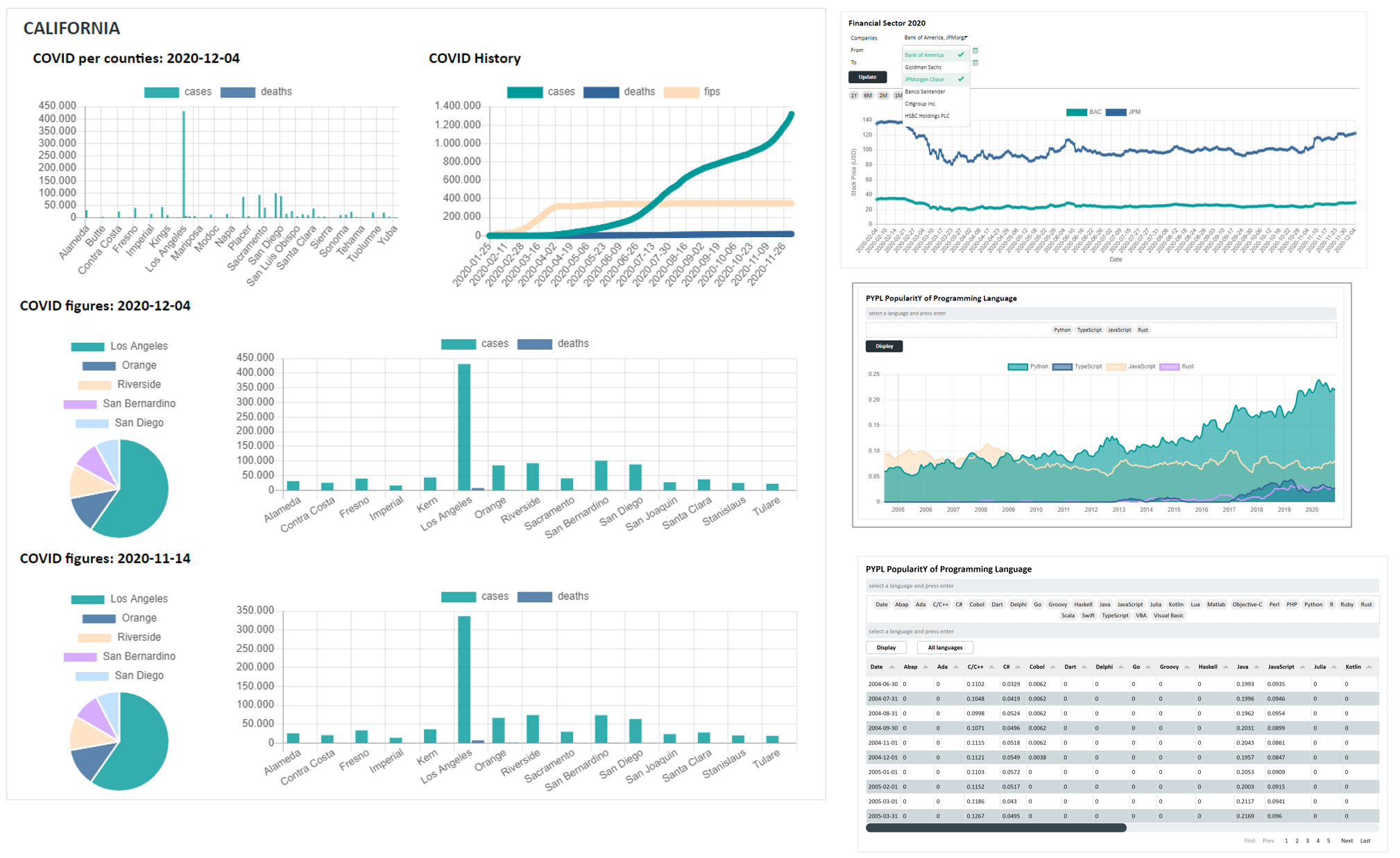 The below code will create a simple interactive dashboard relying on internal mock data.