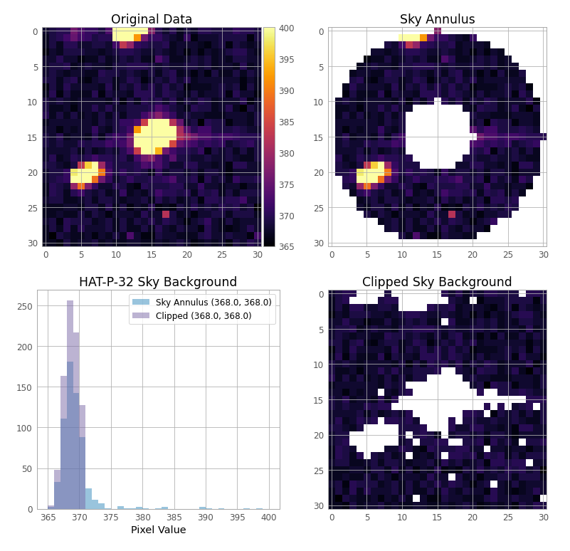 We recommend you test exotic with a sample dataset consisting of 142 fits files taken by a 6” telescope of the exoplanet HAT-P-32 b (V-mag = 11.44) observed on December 20, 2017. The telescope used to collect this dataset is part of the MicroObservatory Robotic Telescope Network operated by the Harvard-Smithsonian Center for Astrophysics.