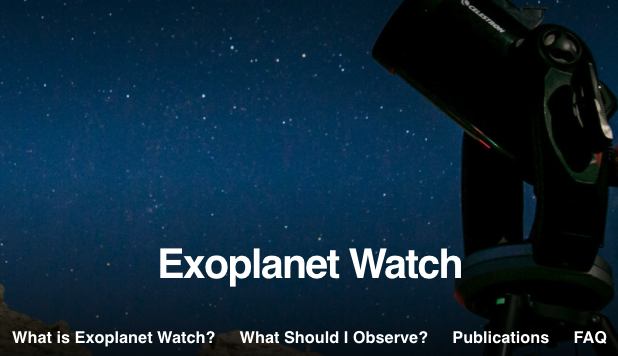Exoplanet Watch is a project by NASA's Universe of Learning. NASA's Universe of Learning materials are based upon work supported by NASA under award number NNX16AC65A to the Space Telescope Science Institute, working in partnership with Caltech/IPAC, Center for Astrophysics | Harvard & Smithsonian, and the Jet Propulsion Laboratory.
