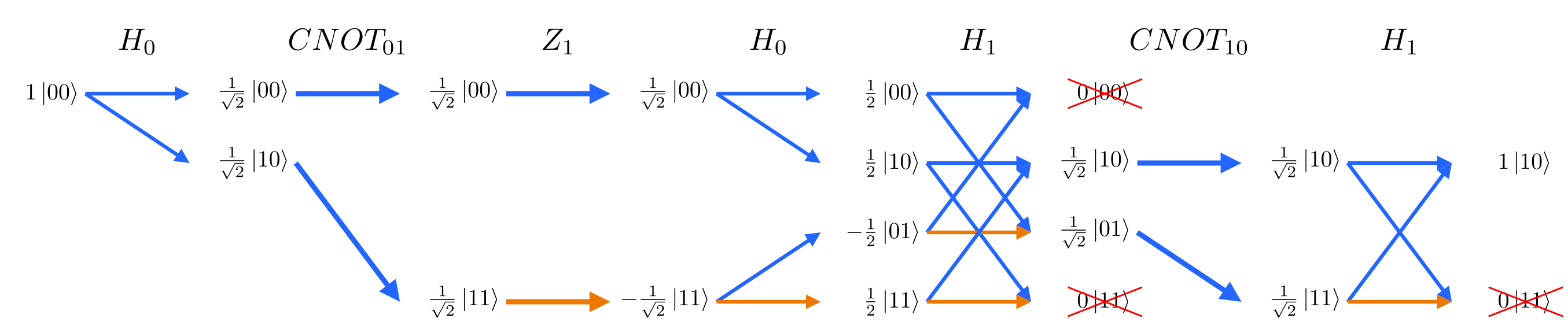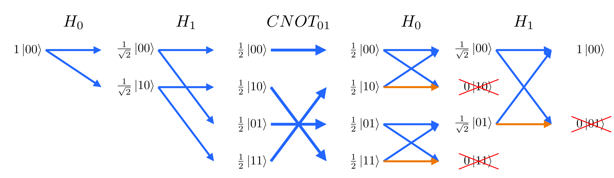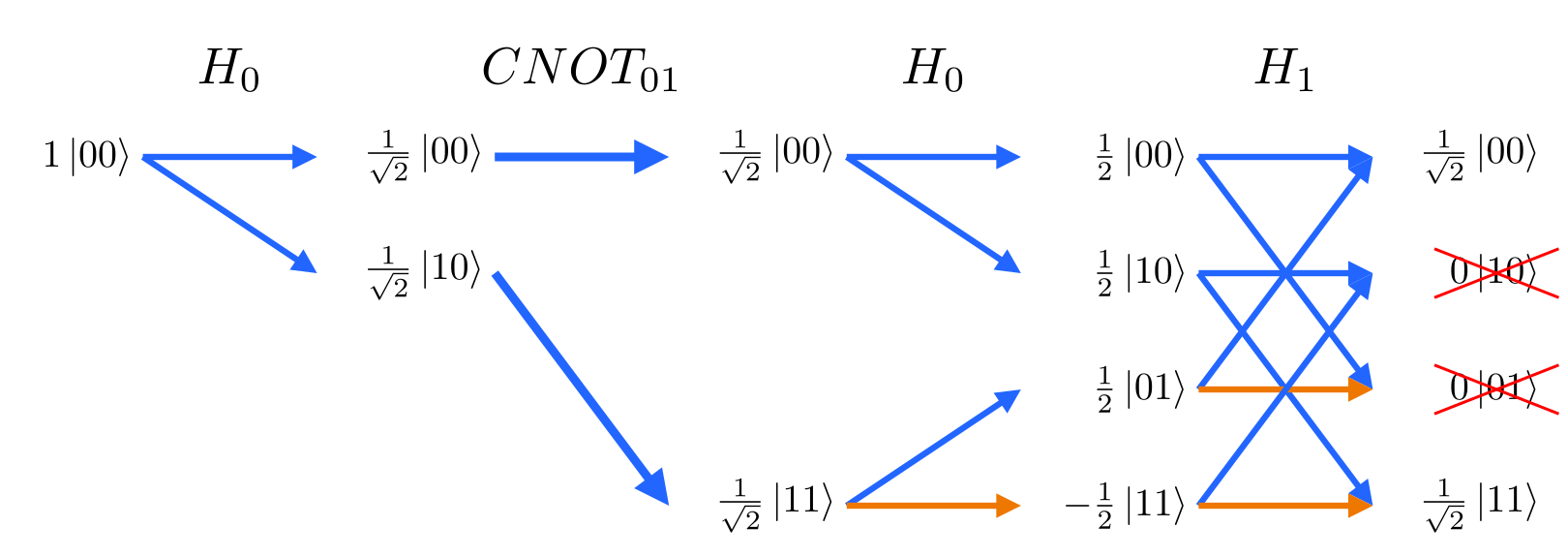 Note the output (rightmost) column is an entangled state: |00⟩+|11⟩