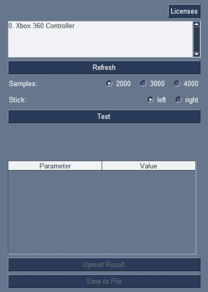 Testand rotate the stick you chose slowly at the edge. - Optionally save the result to a JSON file or upload the result to <gamepadla.com>.