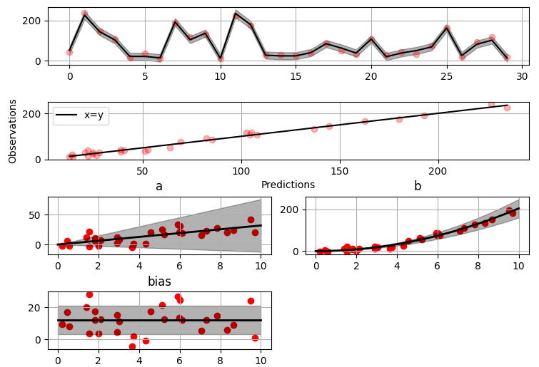 The uncertainty in the weight parameter distributions is modeled using Bayesian statistical analysis with the help of the superb package BayesPy. Alternatively, it is possible to fit models using just NumPy.