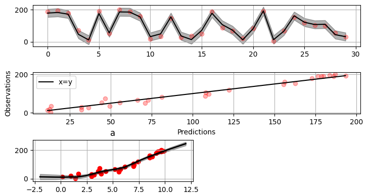 Predictions with uncertainty, that is, posterior predictive mean and variance can be calculated as follows: