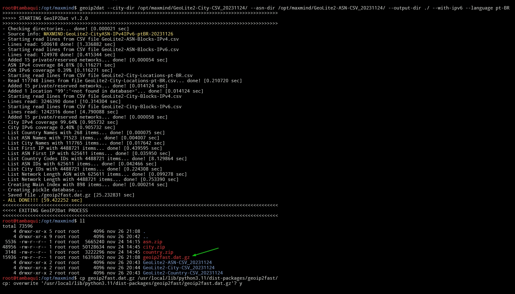- Downloading geoip2fast.dat.gz... 100.00% of 1.06 MiB [10.41 MiB/s] [0.102 sec]