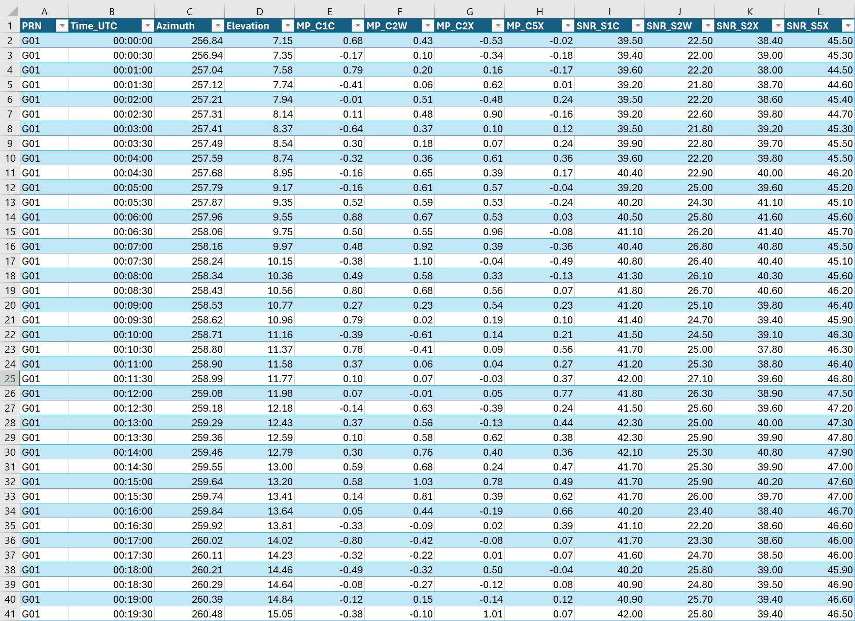 analysisResults = GNSS_MultipathAnalysis(rinObs_file,