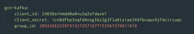 Don't worry about the group_id parameter, it's initially set to XXXX but gocart will replace this with a unique value when it's first run. It is this group_id that allows GCN Kafka to remember which alerts you have or have not heard before. Note the example client above has been deleted, so the credentials quoted here will not work.