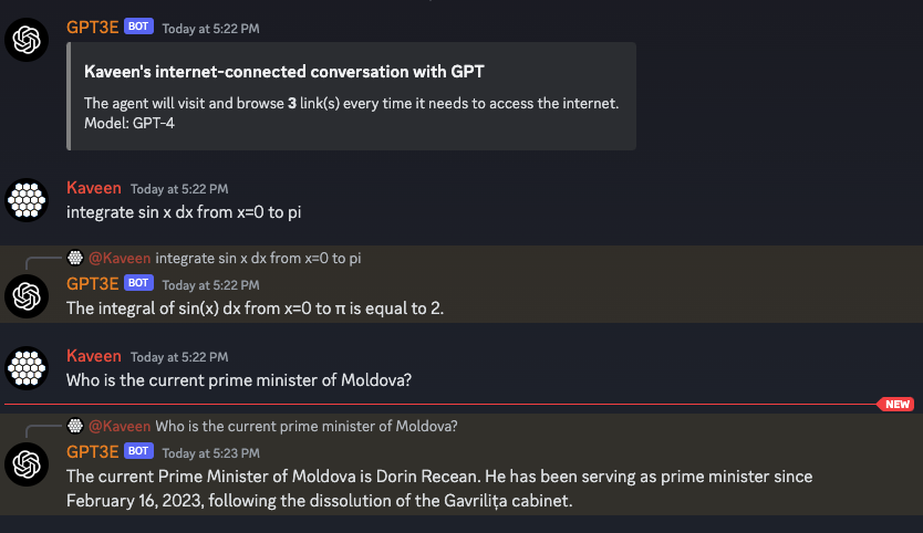 /internet chat search_scope:<number> use_gpt:<True/False> - Start an internet-connected chat with GPT, connected to Google and Wolfram.