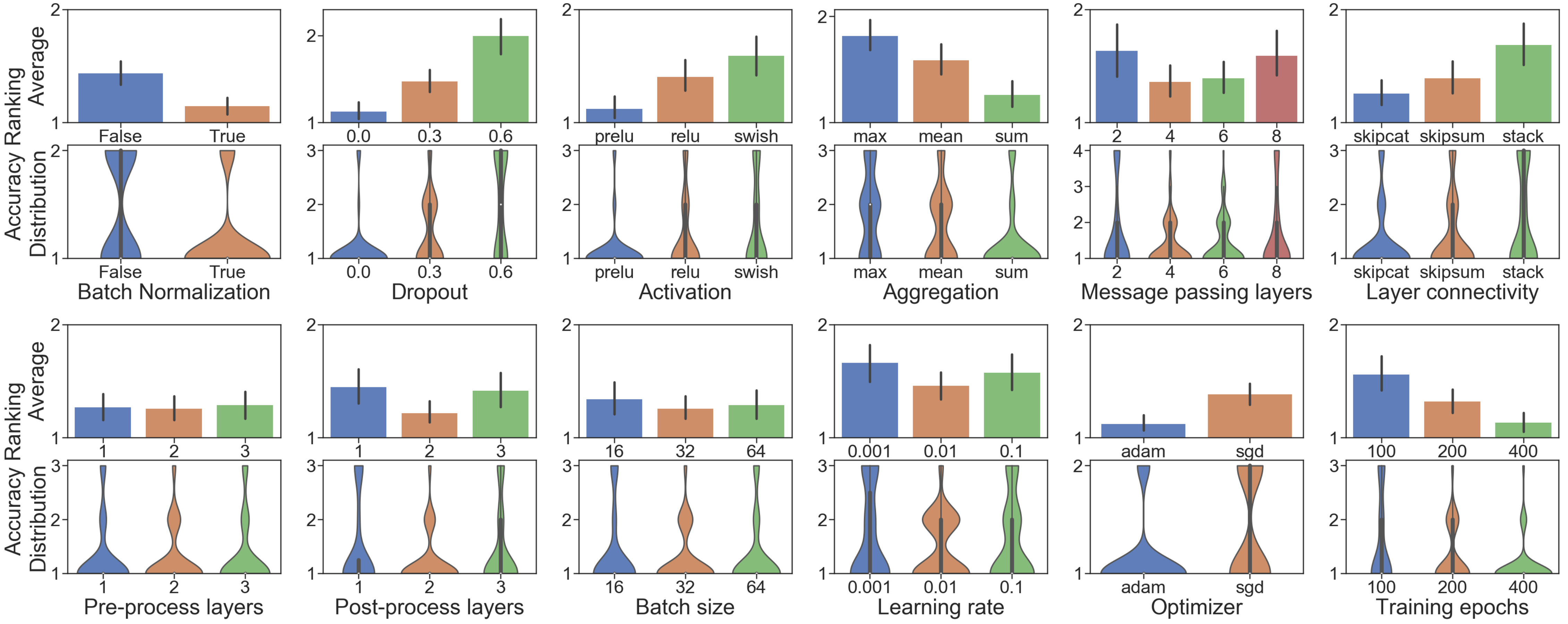 Figure 3: Evaluation of a given GNN design dimension (BatchNorm here).