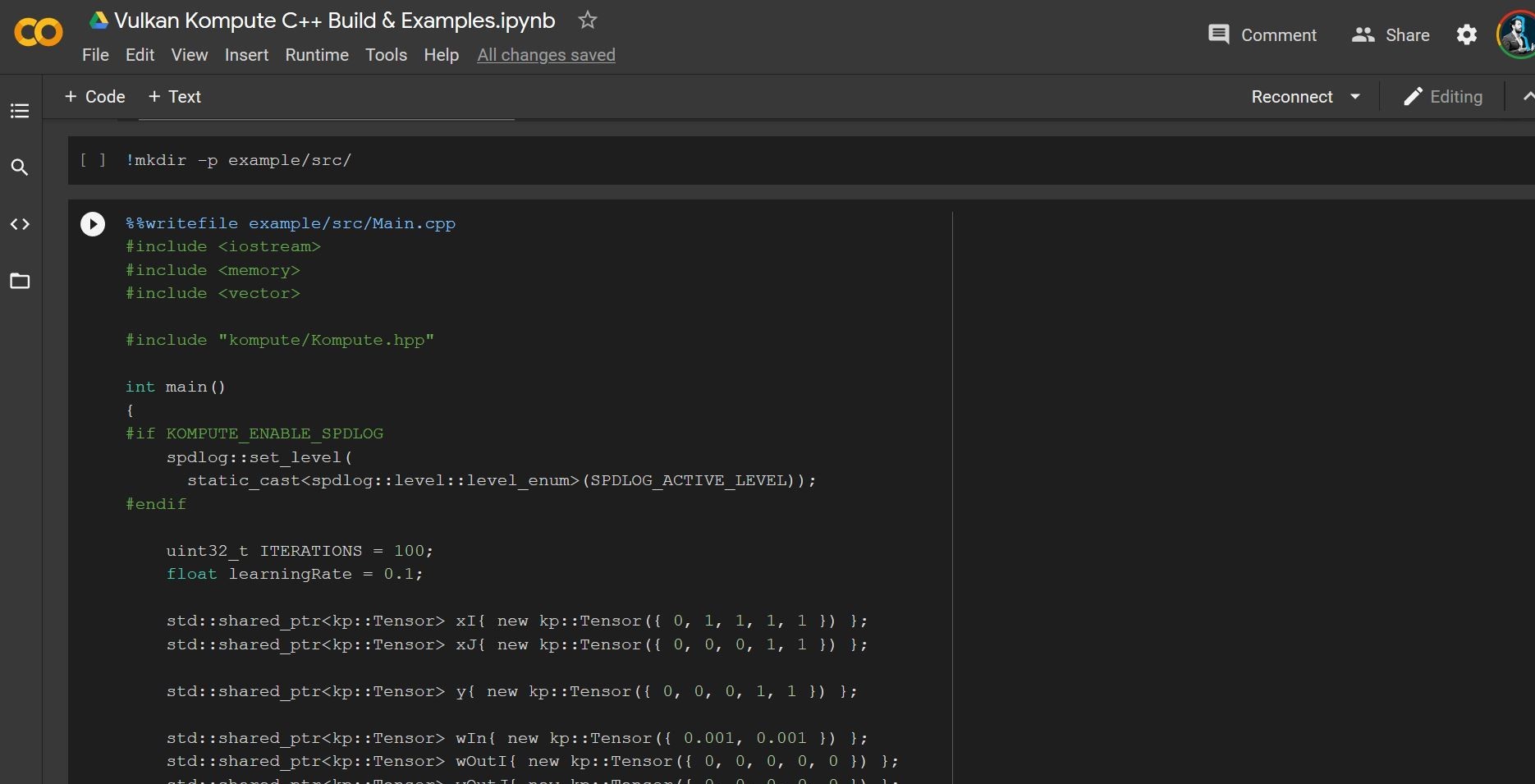 Below you can find a GPU multiplication example using the C++ and Python Kompute interfaces.