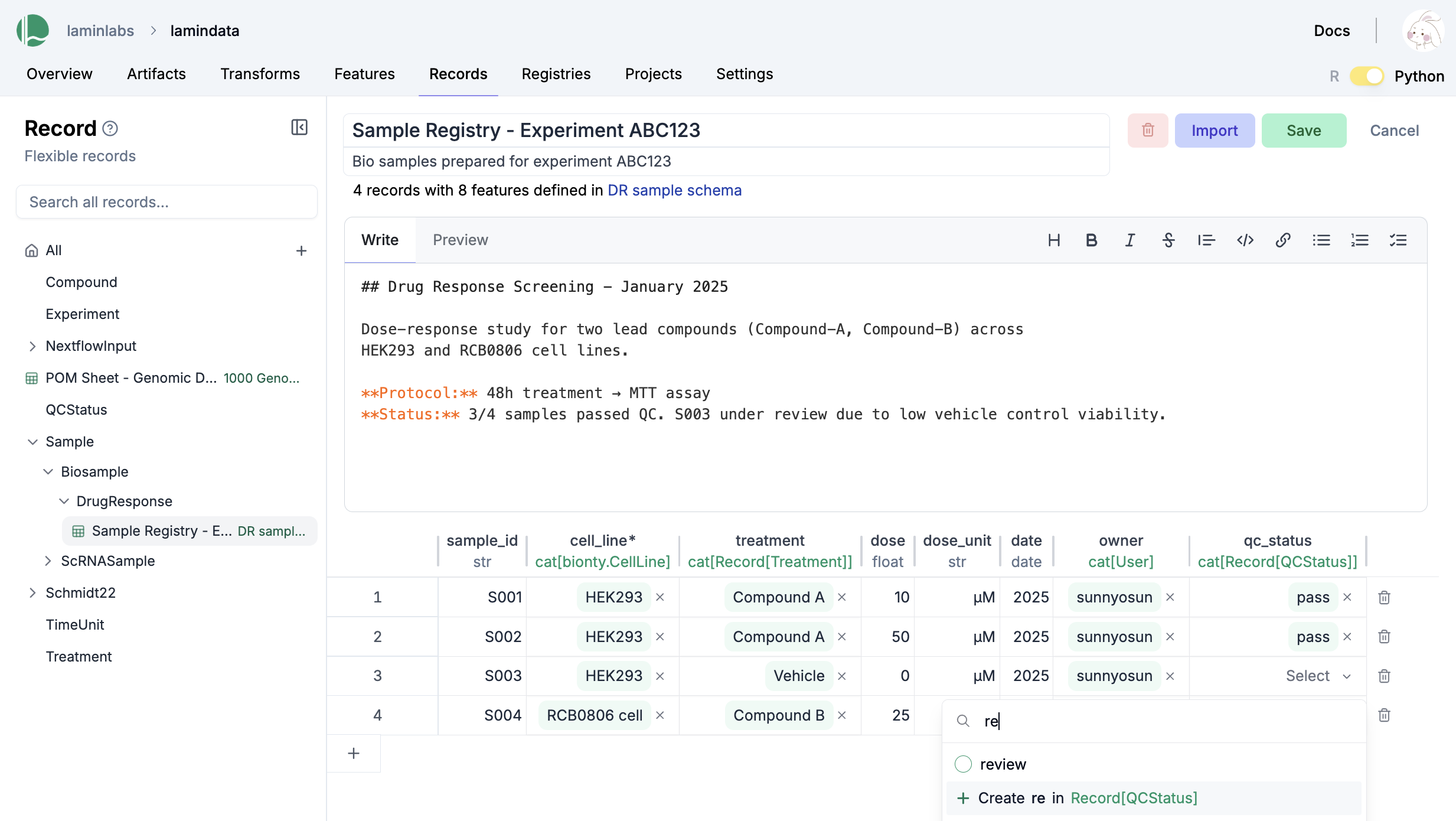 sample = ln.Record(name="Sample", is_type=True).save() # create entity type: Sample