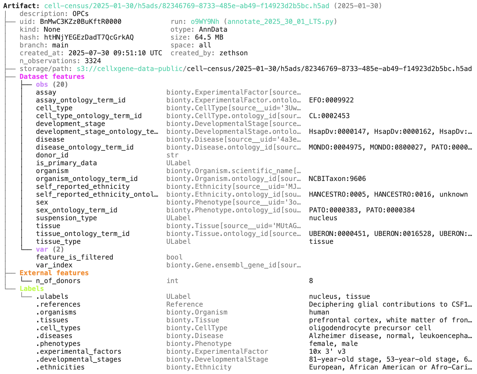 artifact.describe() # context of the artifact