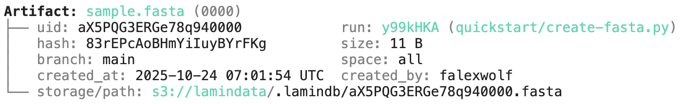 artifact = ln.Artifact.get(key="sample.fasta") # get artifact by key
