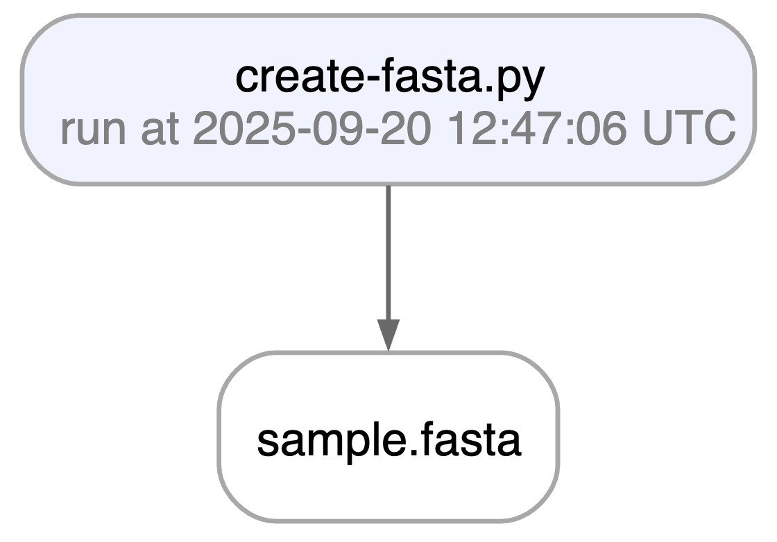 Running this snippet as a script (python create-fasta.py) produces the following data lineage: