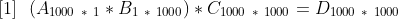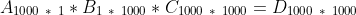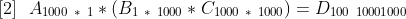 [1] will take 1000 * 1 * 1000 operations to calculate A * B plus 1000 * 1000 * 1000 operations to calculate (A * B) * C. The total sum to calculate A * B * C is equal to 1000^3 + 1000^2.