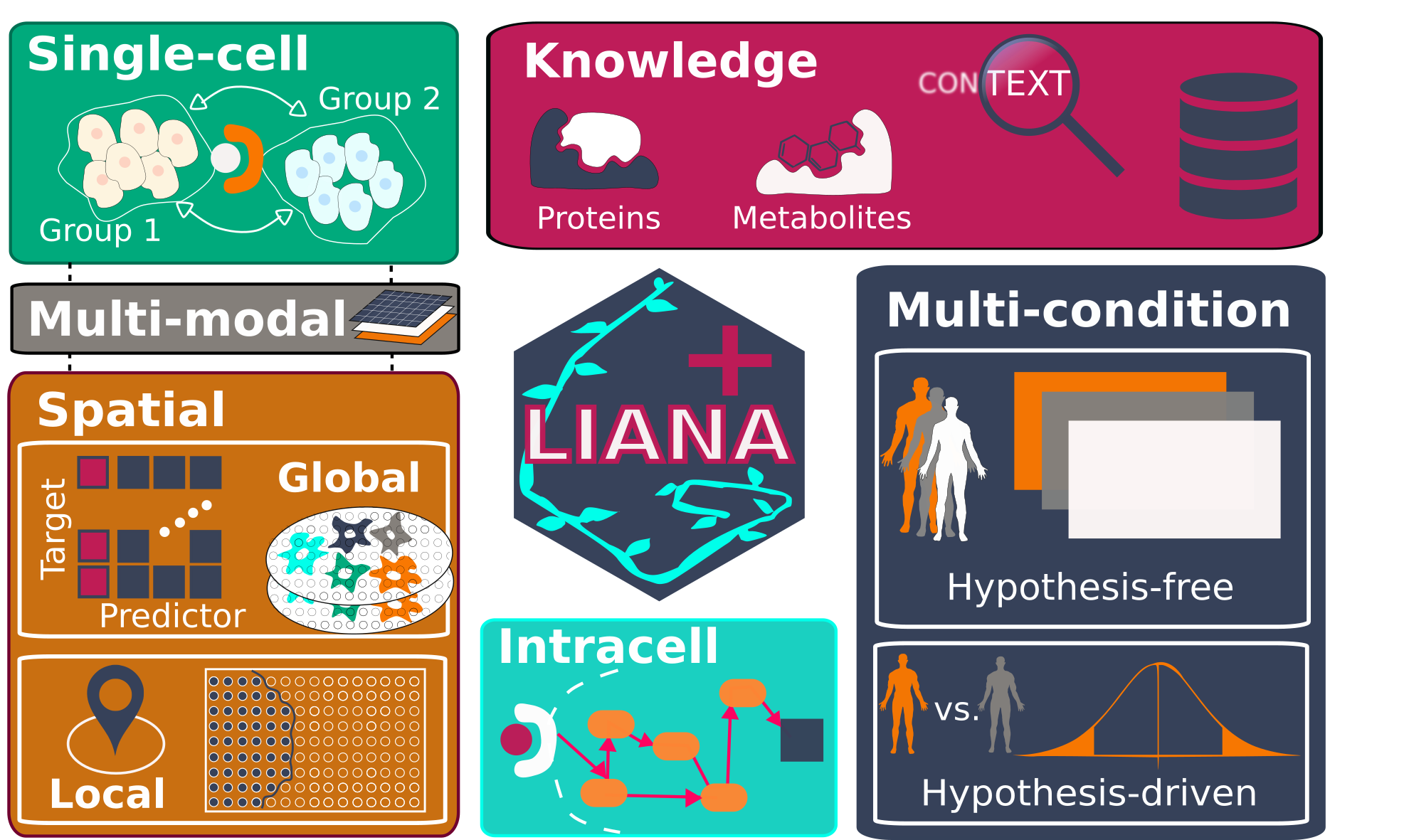 LIANA+ is a scalable framework that adapts and extends existing methods and knowledge to study cell-cell communication in single-cell, spatially-resolved, and multi-modal omics data. It is part of the scverse ecosystem, and relies on AnnData & MuData objects as input.
