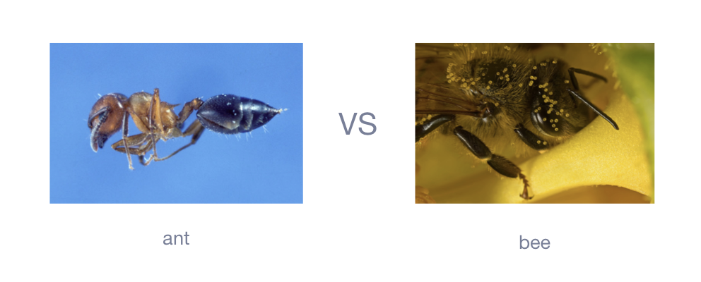 To illustrate, Let's say we wanted to develop a model that could classify between ants and bees.Here we classify ants vs bees.