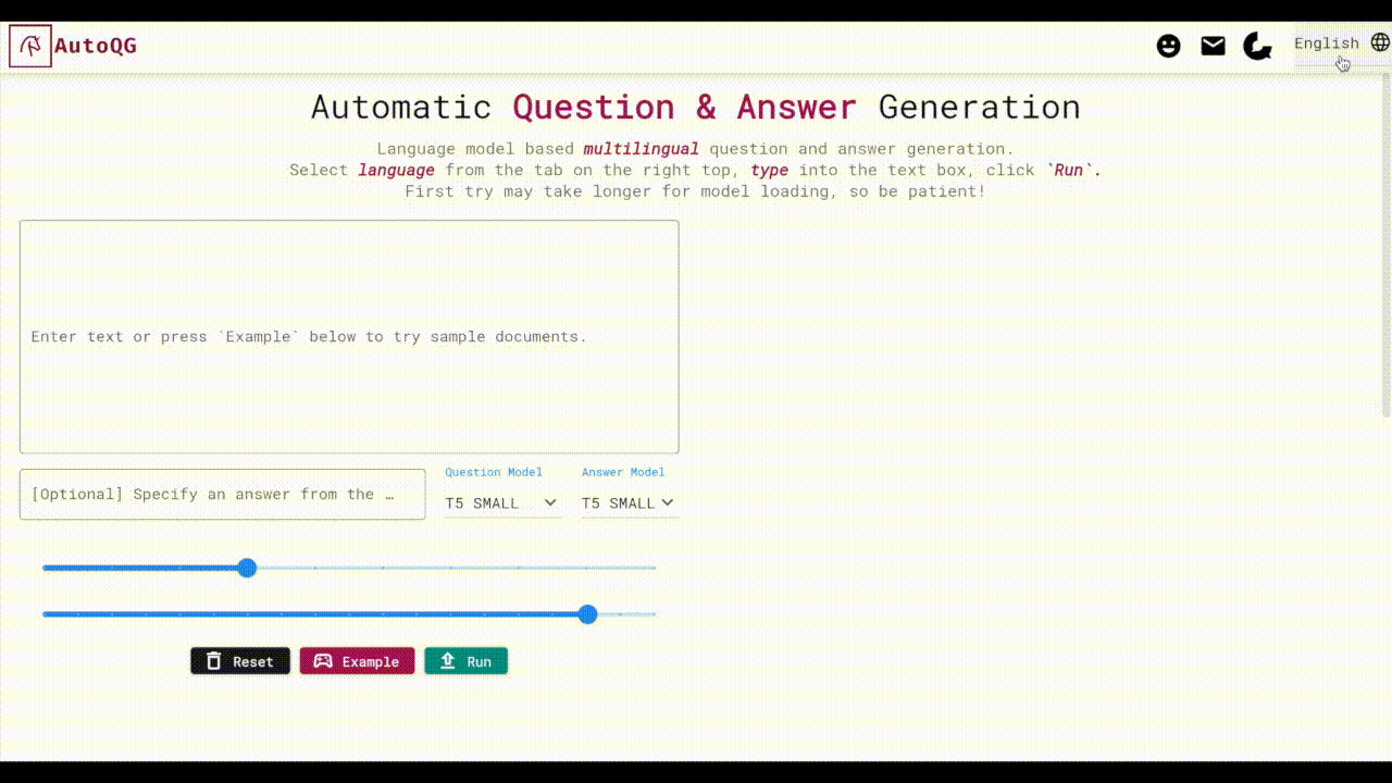 - AutoQG: web application hosting multilingual QG models