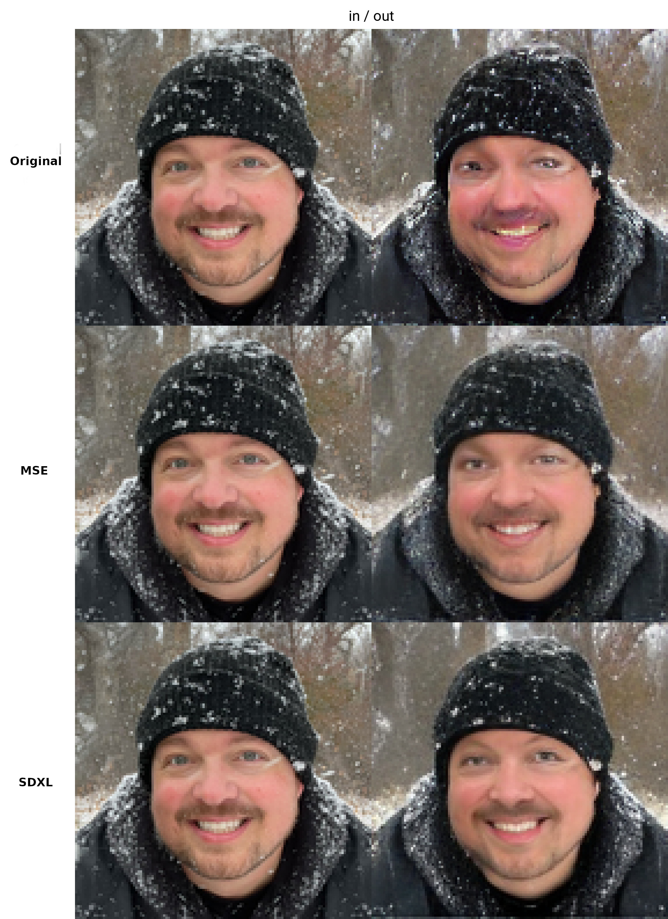 This works, but is not ready for others to use and therefore does not have an example config. I am still working on it. I will update this when it is ready. I am adding a lot of features for criteria that I have used in my image enlargement work. A Critic (discriminator), content loss, style loss, and a few more. If you don't know, the VAE for stable diffusion (yes even the MSE one, and SDXL), are horrible at smaller faces and it holds SD back. I will fix this. I'll post more about this later with better examples later, but here is a quick test of a run through with various VAEs. Just went in and out. It is much worse on smaller faces than shown here.