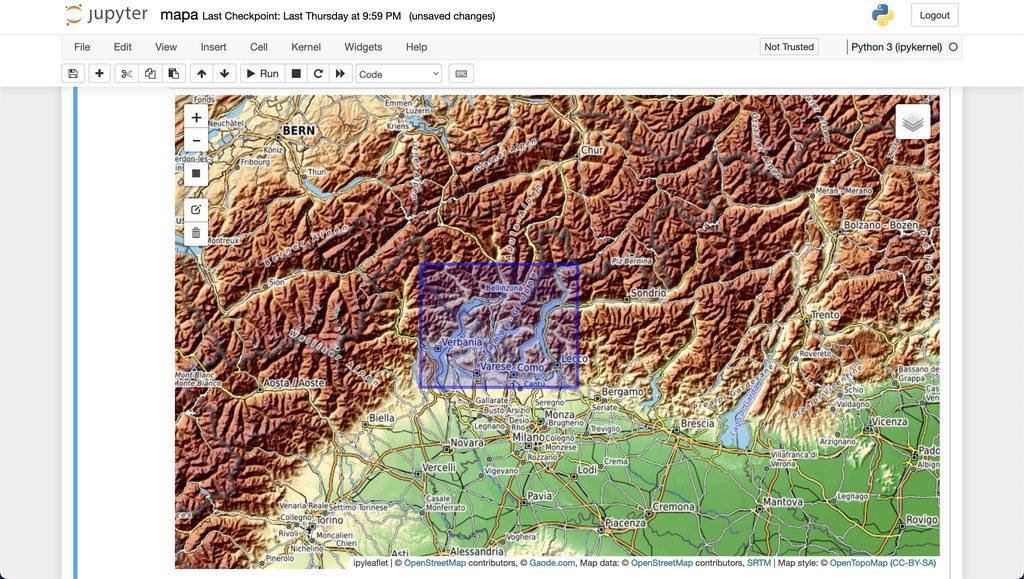 A jupyter notebook will be started with an interactive map. Follow the described steps by executing the cells to create a 3d model of whatever place you like.