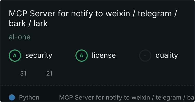 提供消息推送的 MCP (Model Context Protocol) 服务器,支持企业微信、钉钉、Telegram、Bark、Lark、飞书、Home Assistant