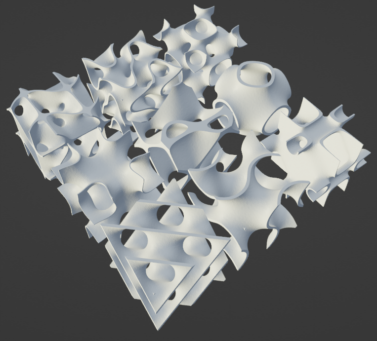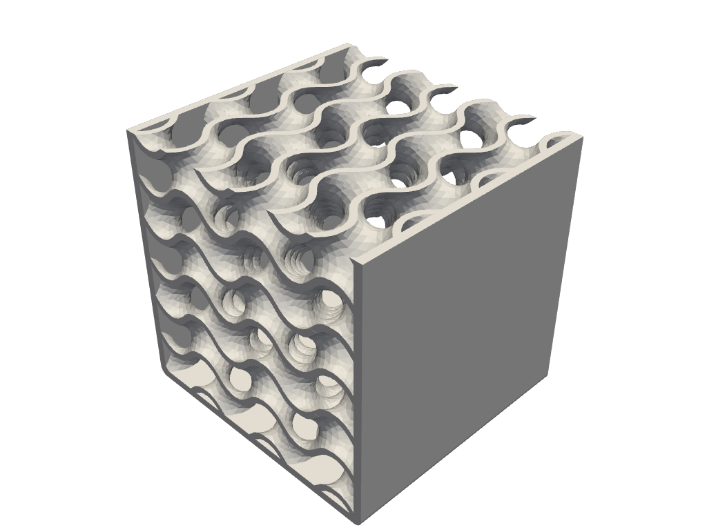 - Triply Periodic Minimal Surfaces (TPMS): TPMS-based lattice generation known for favorable physical (mechanical, thermal, ...) properties like low density and large surface area.