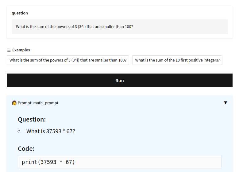 - Code (math_demo.py): Annotate Python functions that call language models.