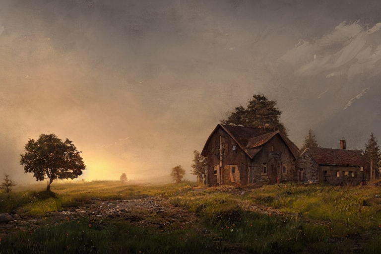 - "A charming house in the countryside, by jakub rozalski, sunset lighting, elegant, highly detailed, smooth, sharp focus, artstation, stunning masterpiece"