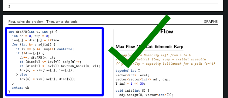 This command will generate a LaTex formatted file, which will be ready to be compiled into your new Competitive Programming Reference, using any online or local LaTex compiler of your preference.