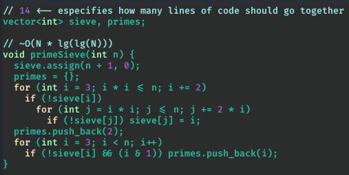 - Forget about undesired line breaks by specifying the lines of code you want together in the same page with a single comment before your lines of code.
