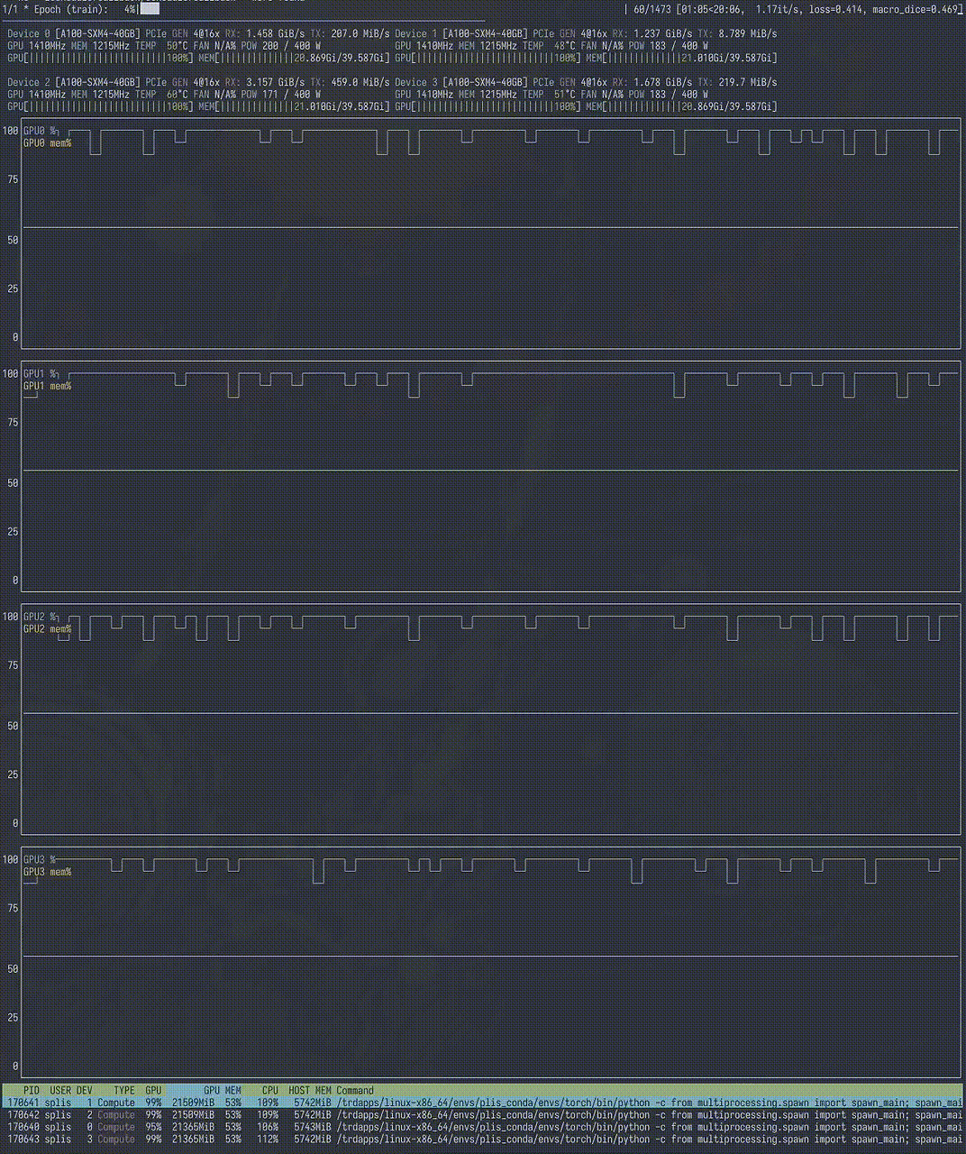 An example of maintaining a high utilization on 4 GPUs