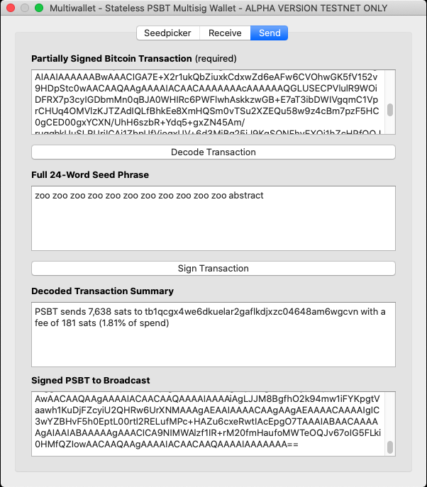 Stateless multisig bitcoin wallet