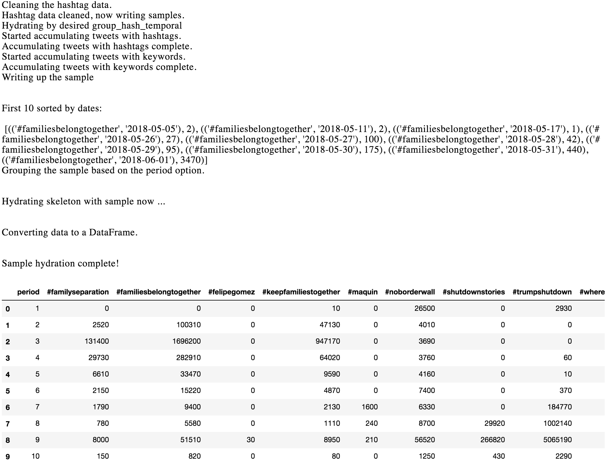 find_term: Helper function for accumulator(). Searches for hashtag in tweet. If there, return True. If not, return False. - Args: - search= String. Term to search for. - text= String. Text to search. - Returns Booleangrouped_dict_to_df: Takes grouped Dict and outputs a DataFrame.- Args:
