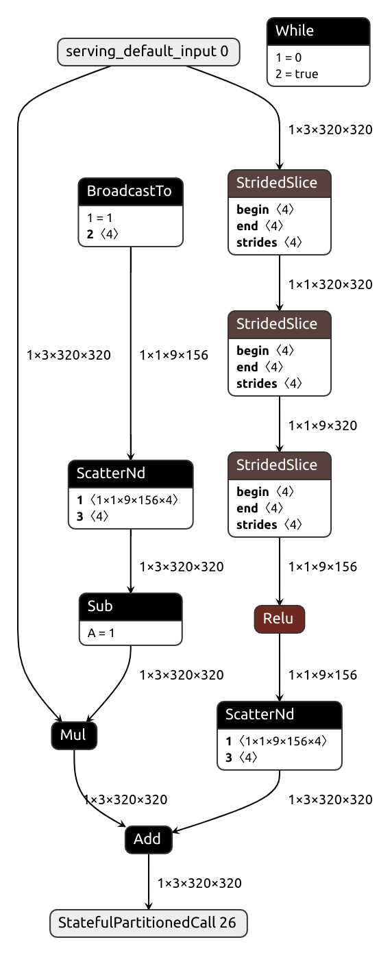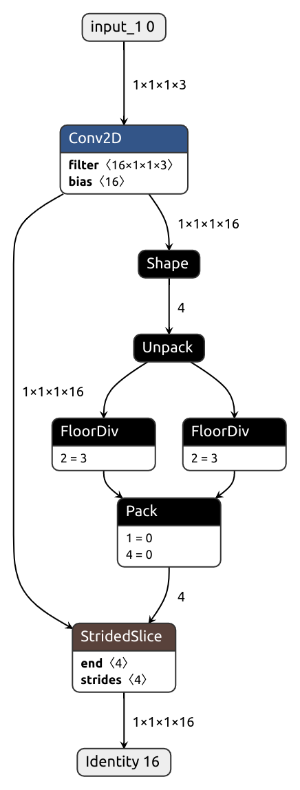 The example above is artificial, but it illustrates the point. It's not feasible to provide a node converter for every existing Pytorch op. There are literally thousands of them! Best we can do without the converter constantly lacking essential functionality, being riddled with bugs, doing weird stuff and breaking apart with every other PT/TF release is to keep the tool simple and customizable, make it clear where a problem comes from and let the user sort things out. Usually it's easy for a human to translate an isolated operation from one framework to another. Reproducing the graph structure is a different matter entirely. For that, Nobuco has you covered!