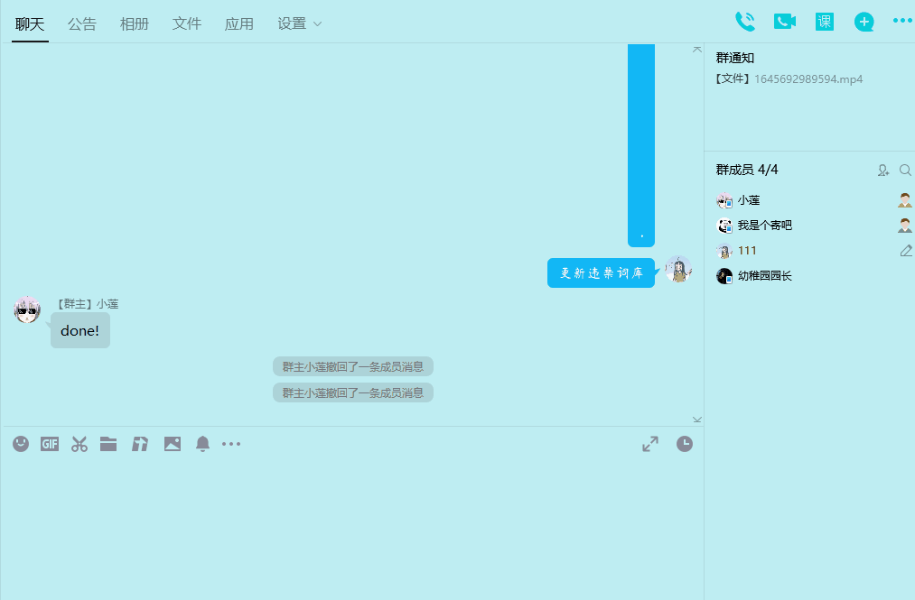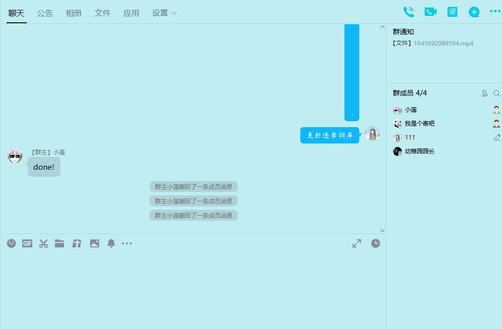 撤回 (回复某条消息即可撤回对应消息)
