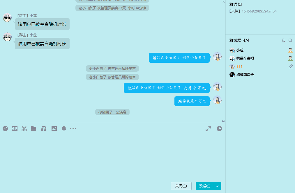 禁言时,该条消息中所有数字都会组合作为禁言时间,如:‘禁@某人 1哈2哈0哈’,则禁言120s