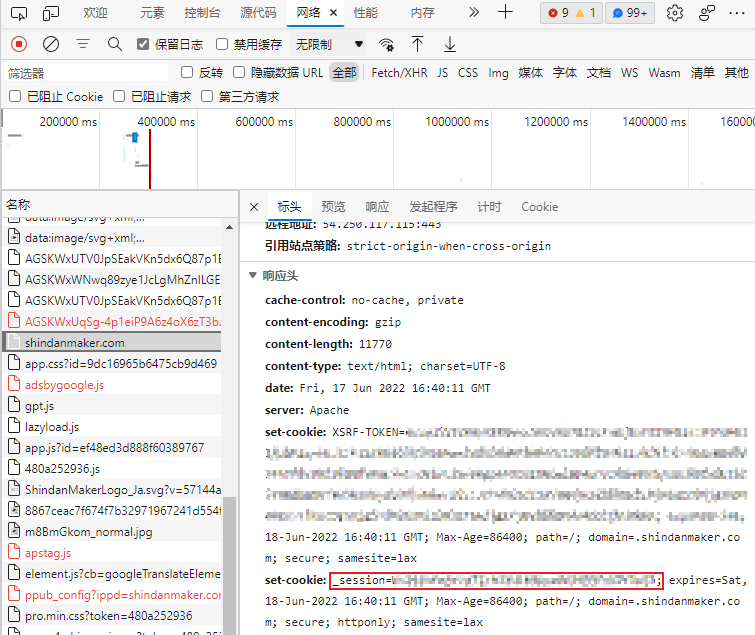 F12 打开开发工具,查看 shindanmaker.com 请求的响应头,找形如 _session=xxx; 的片段,如: