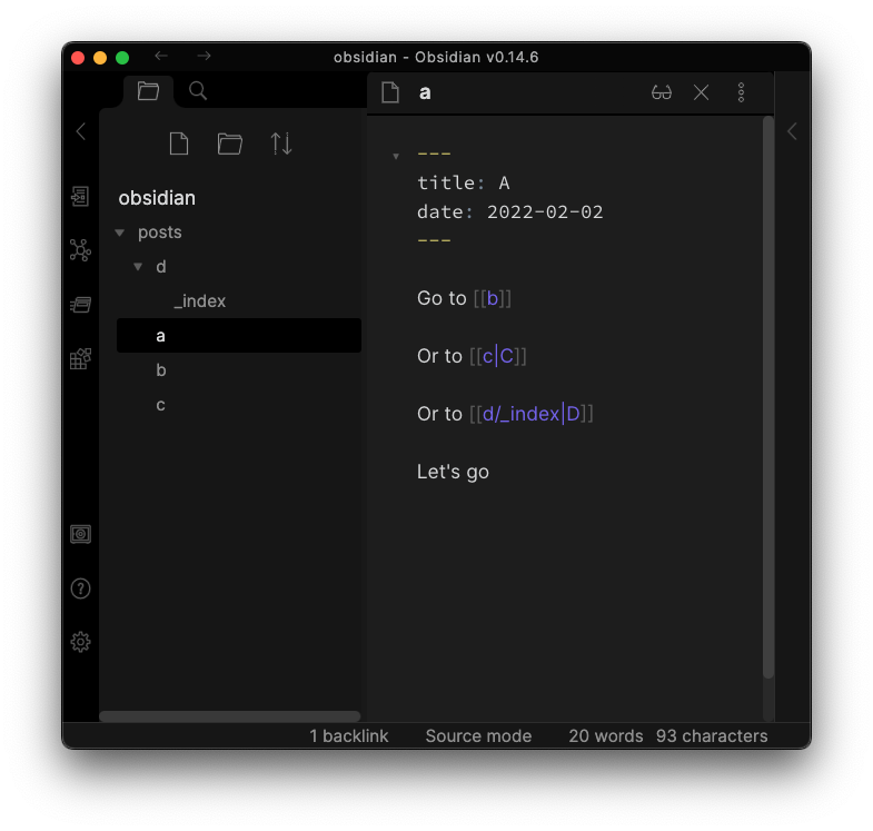 Note For now, there is no way to escape obsidian wiki links. Every link will be replaced with a hugo link. The only way to get around this is changing the wiki link to don't match the exact sytax, for example by adding an invisible space (Obsidian will highlight the invisible character as a red dot).