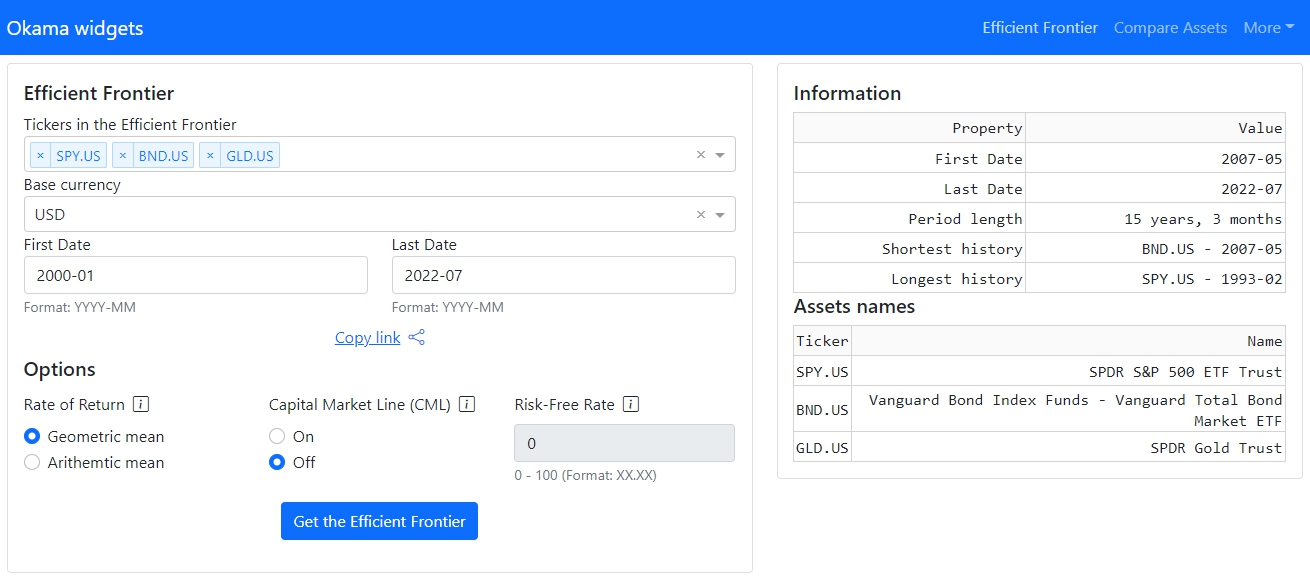 okama is a library with investment portfolio analyzing & optimization tools. CFA recommendations are used in quantitative finance.