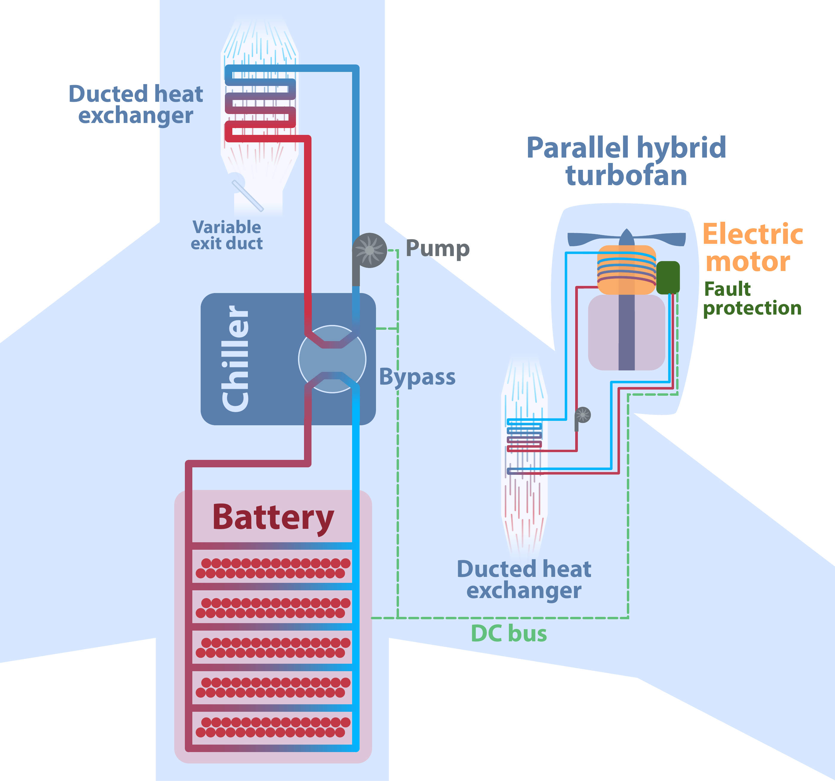 The following figure (from this paper) shows one such system that is modeled in the N3_HybridSingleAisle_Refrig.py example.