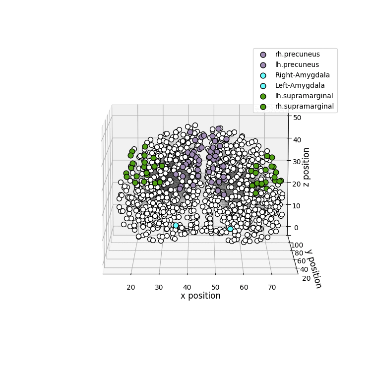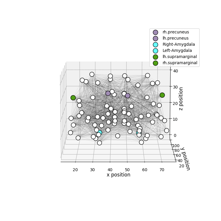 drawRegions: 3D brain graph visualization highlighting the specified regions. The colors used for the regions is the FreeSurfer colormap. -