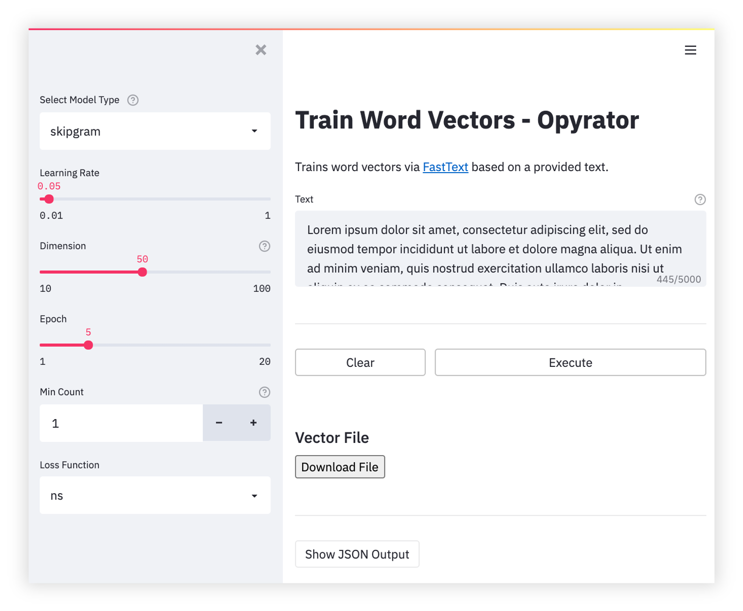 opyrator launch-ui app:train_word_vectors --port 8051