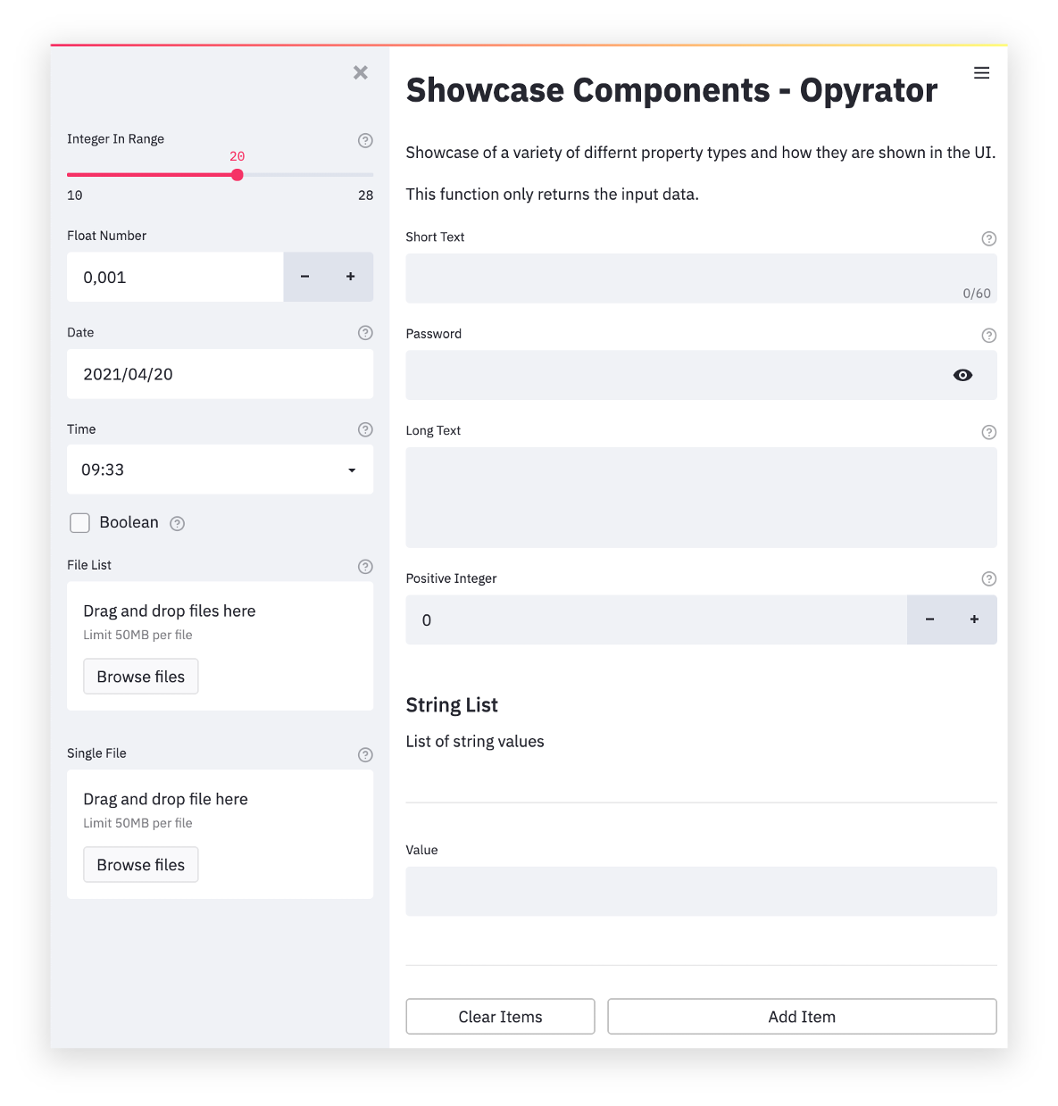 opyrator launch-ui app:showcase_components --port 8051