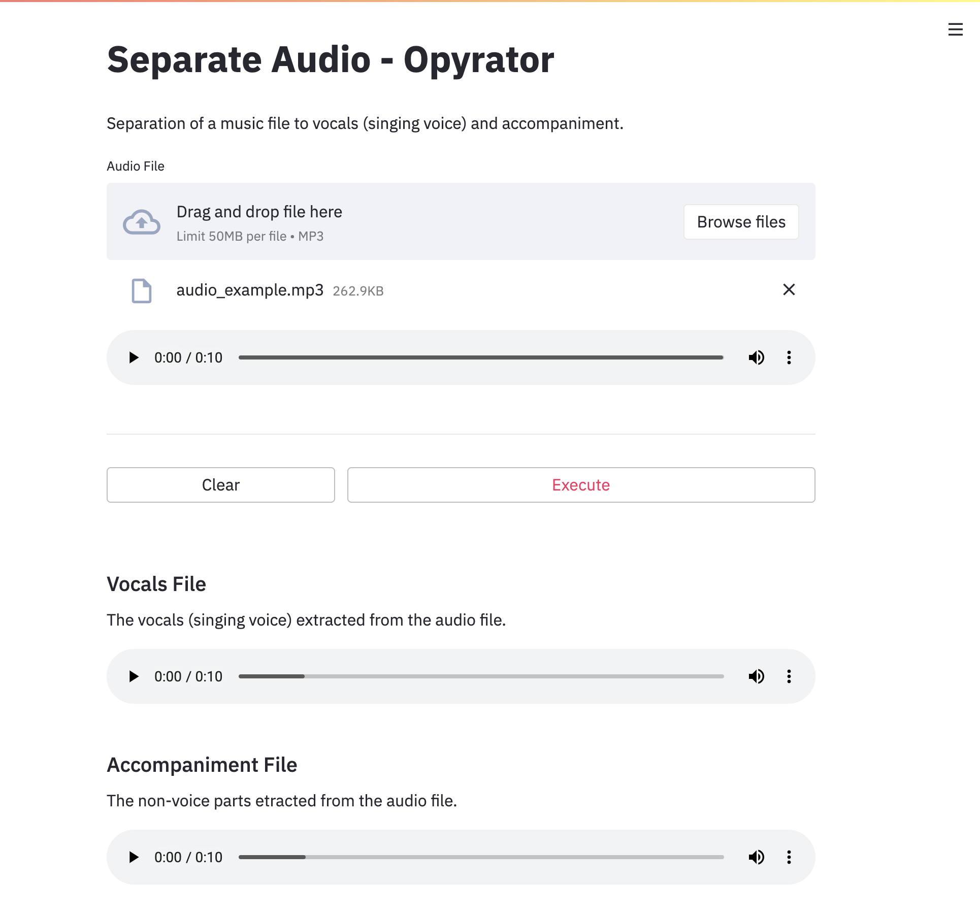 opyrator launch-ui app:separate_audio --port 8051
