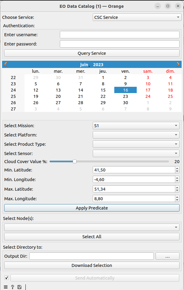 Offers access to 3 services; ODataServiceNodeCSC, ODataServiceNodeDhus and ODataServiceNodeDias via OData Protocol.