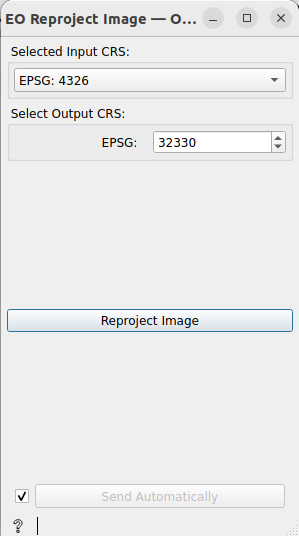 EOReprojectImage Widget is used to reproject an image from one CRS to another.