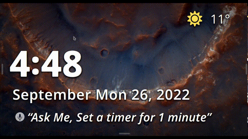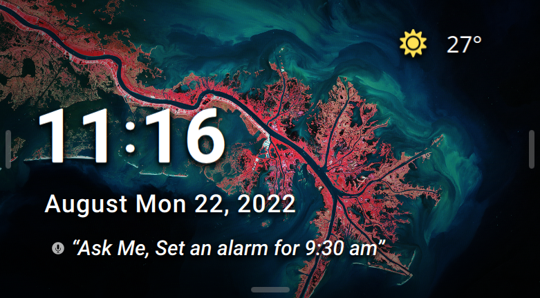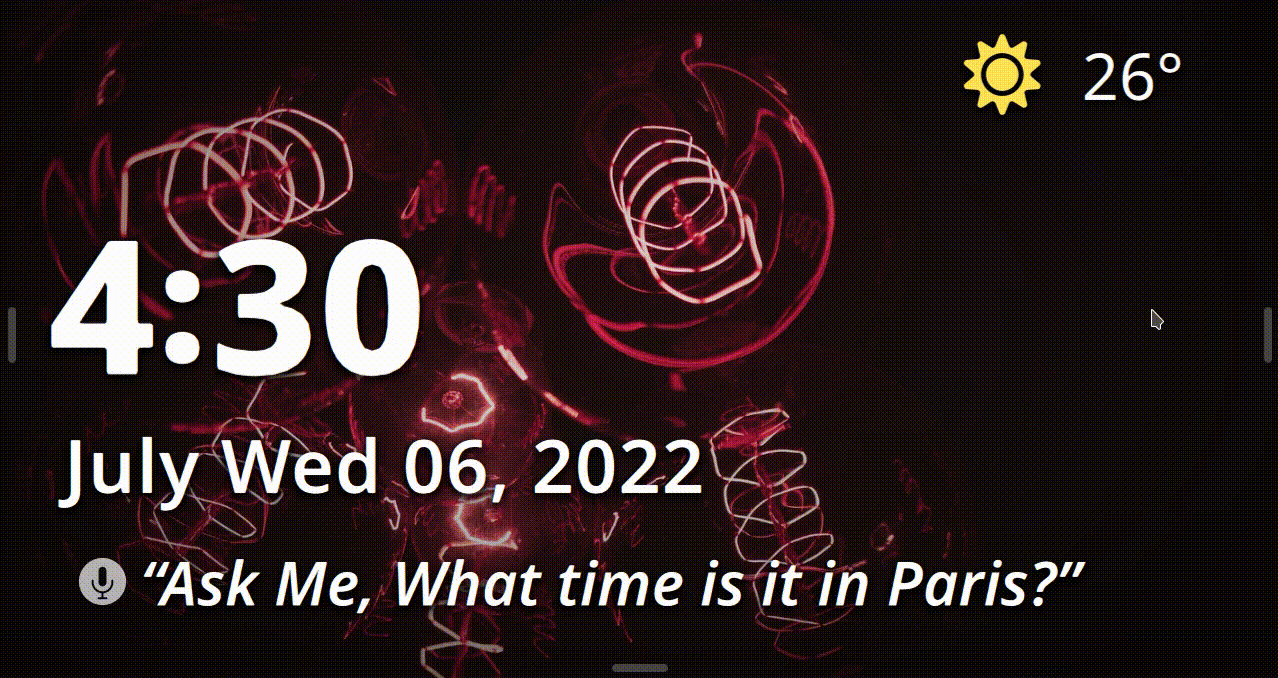 The Night Mode feature lets you quickly switch your home screen into a dark standby clock, reducing the amount of light emitted by your device. This is especially useful if you are using your device in a dark room or at night. You can enable the night mode feature by tapping on the left edge pill button on the home screen.