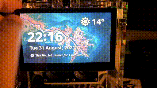 The alarm widget is displayed in top left corner after the timer widget. It will show up when you have an active alarm set. Clicking on the alarm widget will open the alarms overview.